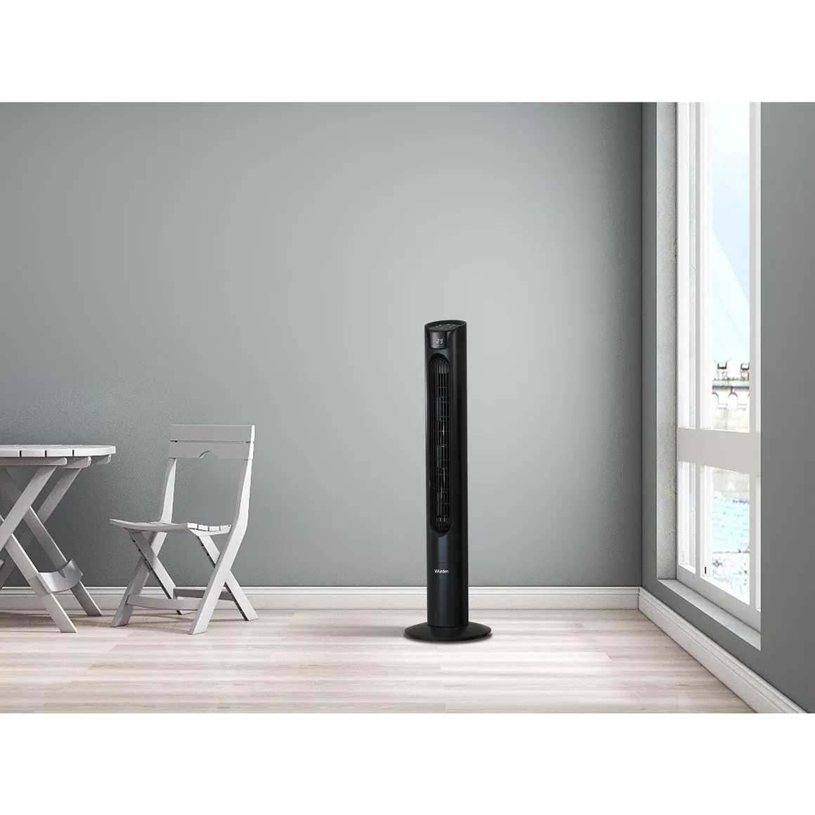 Dale a tu hogar la brisa refrescante que se merece con nuestro Ventilador de Torre de 39 pulgadas. Su elegante diseño negro se adapta a cualquier espacio, ofreciendo una potente y silenciosa ventilación. Con control remoto y temporizador, disfrutarás de la comodidad y frescura personalizadas. ¡Olvídate del calor sofocante y disfruta de un ambiente agradable!